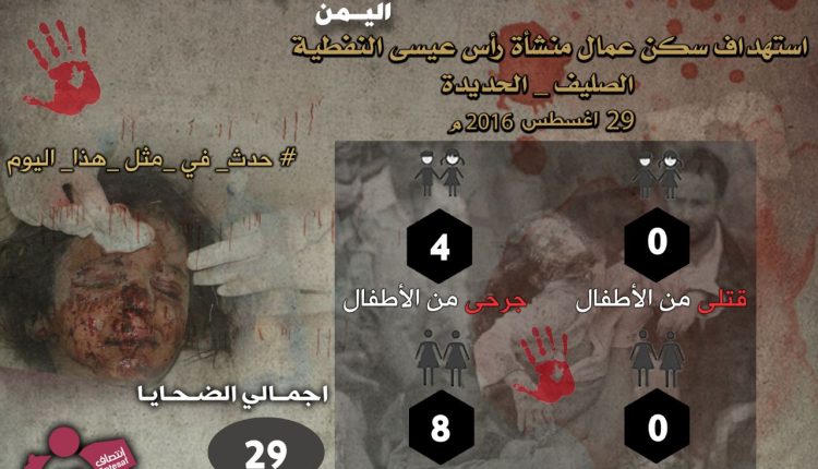 استهداف سكن عمال منشاة رأس عيسى النفطيفة بمنطقة الصليف محافظة #الحديدة