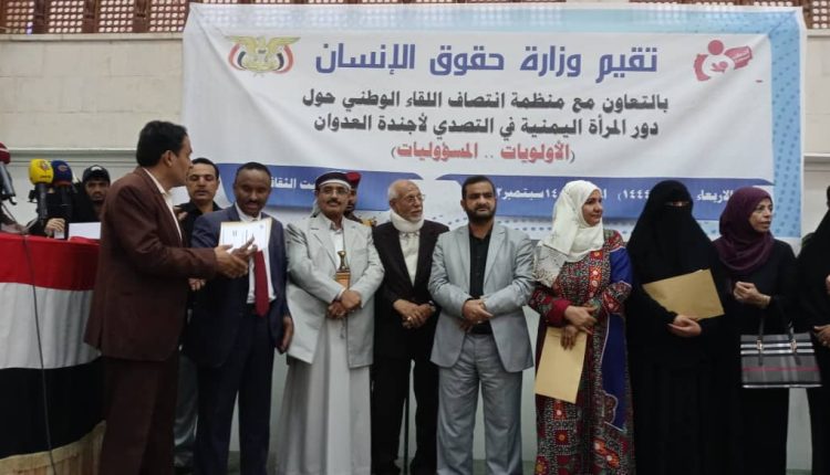 لقاء موسع بصنعاء حول دور المرأة اليمنية في التصدي لأجندة العدوان “الأولويات والمسؤوليات”، نظمته وزارة حقوق الإنسان بالتعاون مع منظمة انتصاف لحقوق المرأة والطفل