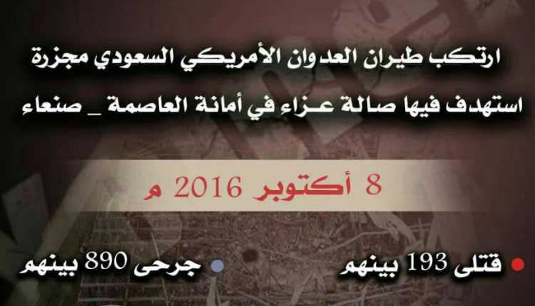 ارتكب طيران العدوان الأمريكي السعودي مجزرة استهدف فيها صالة عزاء في #أمانة العاصمة -#صنعاء