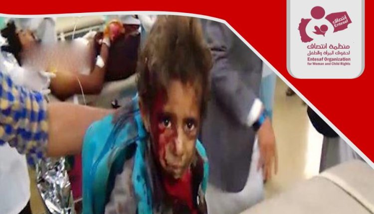 منظمة_انتصاف لحقوق المرأة والطفل تصدر تقريراً حقوقيا يوثق جريمة استهداف طائرات تحالف العدوان حافلة طلاب في مدينة ضحيان-محافظة صعده 9 اغسطس 2018م