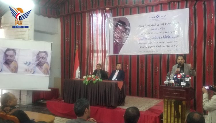 عقدت منظمة إنسان للحقوق والحريات اليوم مؤتمراً صحفياً لأسرة المغترب المغدور به المواطن اليمني علي عاطف هضبان العليي لكشف تفاصيل الجريمة التي ارتكبها بحقه جهاز أمن الدولة السعودي.
