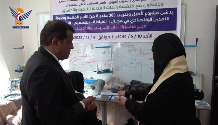 يهدف المشروع الذي تنفذه منظمة رائدات العدالة للتنمية والحقوق بتمويل وإشراف صندوق تنمية المهارات، ويستمر ستة أشهر إلى تدريب وتأهيل 300 امرأة من الأسر المنتجة في مجال “الخياطة، التصميم، التسويق”، بما يمكنهن من الاعتماد على الذات والانتقال من الاحتياج إلى الإنتاج .