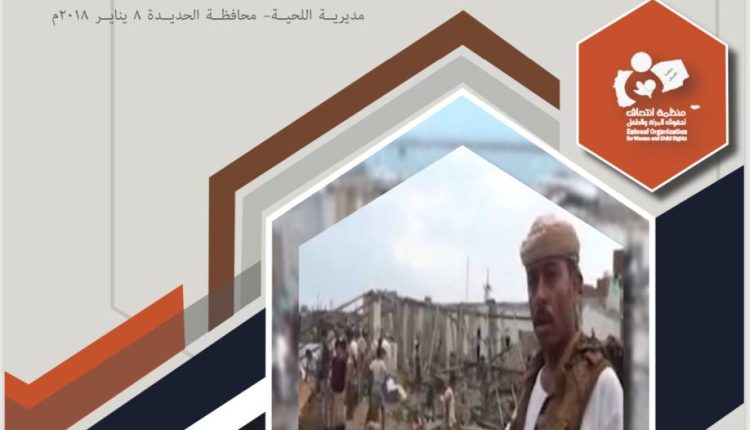 أصدرت منظمة انتصاف لحقوق المرأة والطفل تقريراً حقوقياً بعنوان”الثروة السمكية تحت النار” حيث تناول التقرير الجريمة التي ارتكبها طيران تحالف العدوان على مبني الثروة السمكية بمنطقة ميناء الخوبة التابعة لمدیریة اللحية بمحافظة الحديدة والتي را ح ضحيتها مدنيين بينهم نساء و أطفال، وذلك بتاريخ 7 يناير 2018م