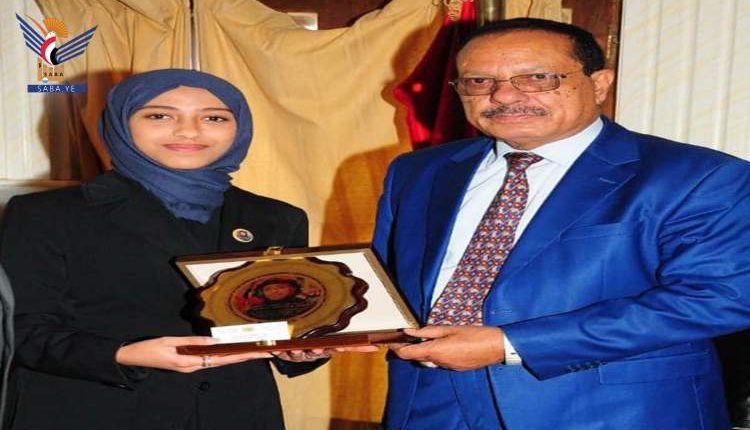 ولدى استقباله الفائزة اليمنية بالجائزة الصينية، اليوم، ومعها والدها الدكتور علي الرعيني ووالدتها الدكتورة سميرة الغولي، بارك وزير الثقافة الجهود الأسرية وكذلك المدرسية وبرلمان شباب البريكس، والتي قدمت الهوية اليمنية بين هويات الأمم وتوّجت بهذا الفوز عن بُعد.