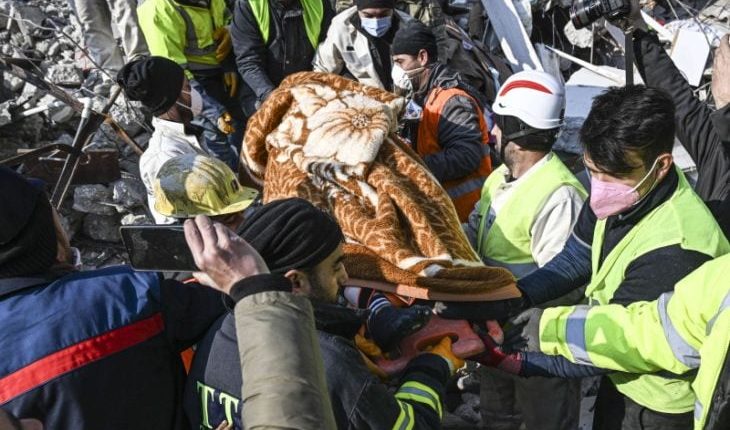 كم تمكنت فرق الإنقاذ، الأحد، من انتشال سيدة على قيد الحياة من تحت أنقاض مبنى، بعد 150 ساعة على الزلزال في ولاية هاتاي جنوبي تركيا.