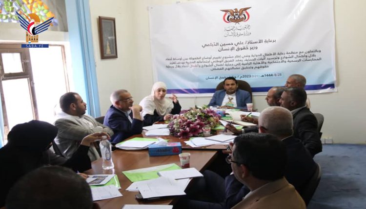 عقد بوزارة حقوق الإنسان اليوم الاجتماع الأول للفريق الوطني لمشروع تقييم أوضاع الطفولة بين أوساط أحفاد بلال وأطفال الشوارع وتجسيد آليات الحماية برئاسة الوزير علي الديلمي .