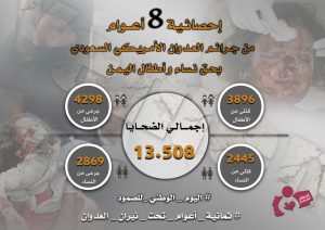 احصائية 8 اعوام من جرائم العدوان الأمريكي السعودي بحق نساء و أطفال اليمن