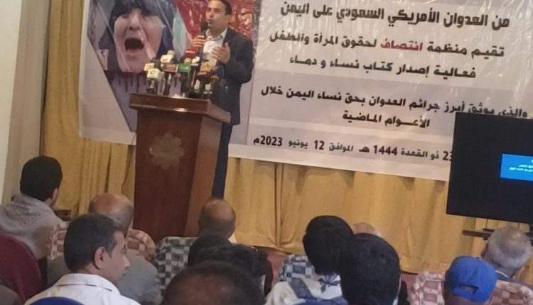 نظمت منظمة انتصاف لحقوق المرأة والطفل، اليوم، بصنعاء، فعالية بمناسبة إصدار كتاب “نساء ودماء”، الذي يوثق أبرز جرائم العدوان الأمريكي السعودي بحق نساء اليمن، خلال الأعوام الماضية.