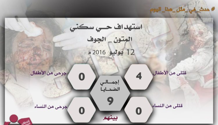 استهداف حي سكني بمنطقة المتون محافظة #الجوف