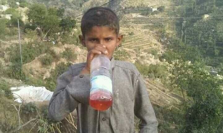 أدمن على استنشاق/البترول منذ صغره التحق بالعمل بمحطات “الوقود” بسبب إدمانه أصبحت مادة “البترول” هي المفضلة بالنسبة له وذلك عن طريق الإستنشاق وبدون البترول لايستطيع السير أوالحركة وفي حالة نفاذ مادة البترول يفقد الحركة كليا لا يقدر على المشي ثم يفقد الوعي ويغمى عليه ويسقط على الأرض أصبح دائما رفيق “قارورة” من البترول أثناء المشي أو اللعب حيث يستهلك الطفل حميد يوما قرابة “لتر” إلى “لترين” من مادة “البترول” أوحسب المسافة التي “يقطعها” في يومه ومقدارالحركة وذلك عن طريق الإستنشاق المتواصل.