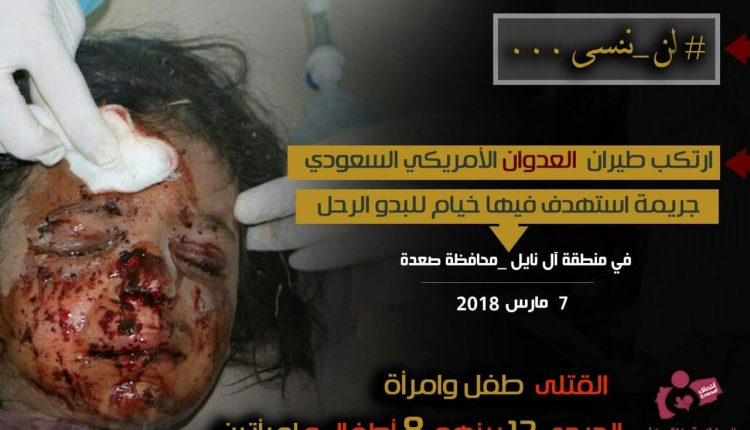 حيث ارتكب طيران العدوان الأمريكي السعودي جريمة استهدف فيها خيام للبدو الرحل في منطقة آل نايل – محافظة #صعدة*