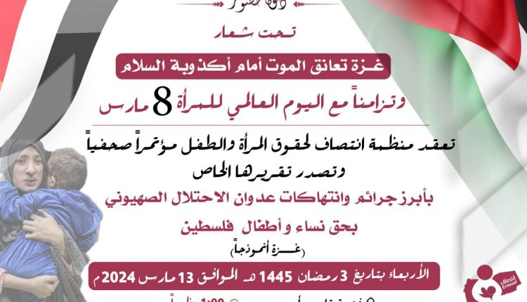 تعقد منظمة انتصاف لحقوق المرأة والطفل مؤتمراً صحفياً وتصدر تقريرها الخاص
