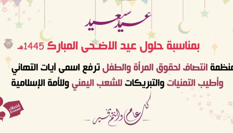 #منظمة انتصاف لحقوق المرأة و الطفل ترفع اسمى آيات التهاني وأطيب التمنيات و التبريكات للشعب اليمني و للأمة الإسلامية بمناسبة حلول عيد الاضحي المبارك 1445هجرية