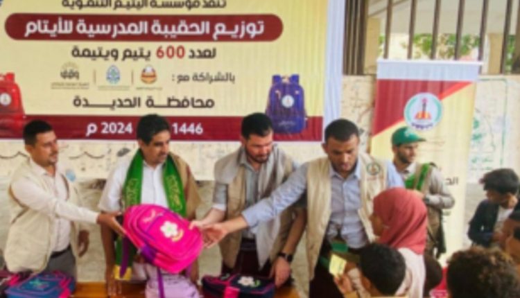 مؤسسة اليتيم توزيع الحقيبة المدرسية على 600 يتيم ويتيمة بمحافظة الحديدة