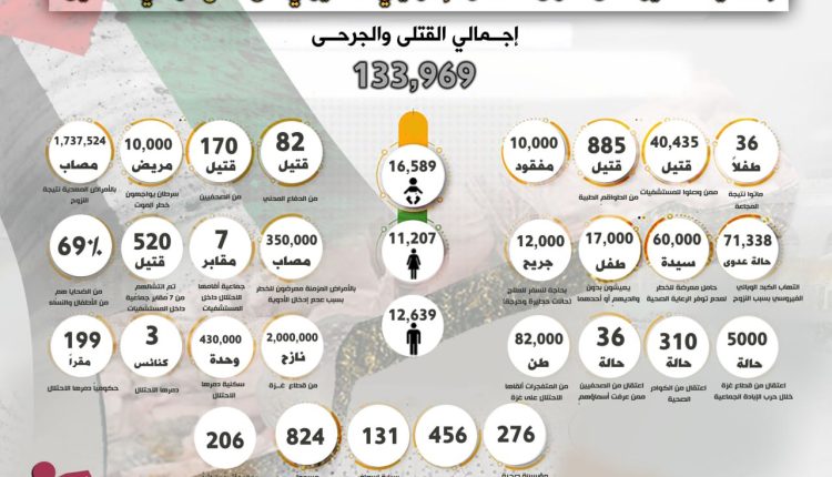 إحصائية 325 يوماً من عدوان الاحتلال الصهيوني على قطاع غزة في فلسطين