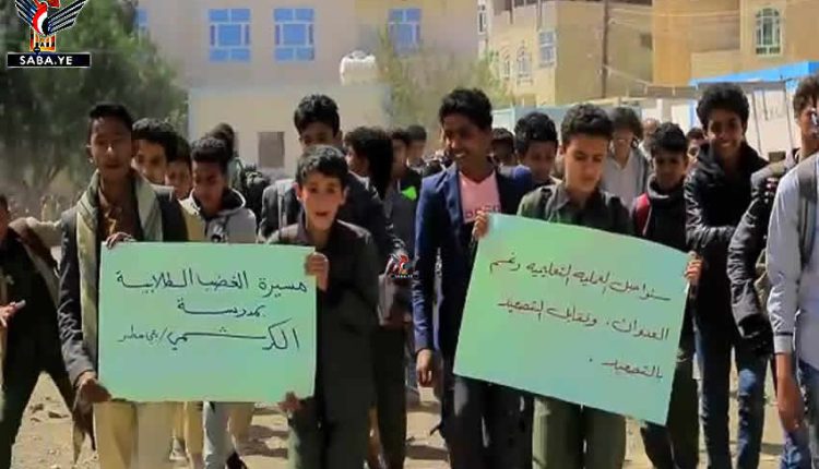 مسيرات طلابية تدين جرائم وتصعيد التحالف بمحافظة صنعاء