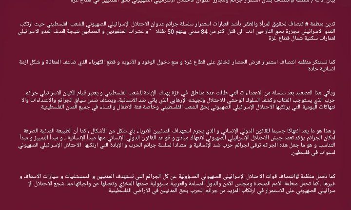منظمة انتصاف – بيان إدانة