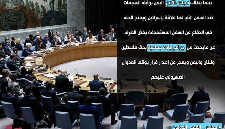 بينما يطلب مجلس الأمن اليمن بوقف الهجمات ضد السفن التي لها علاقة بإسرائيل ويمنح الحق في الدفاع عن السفن المستهدفة يغض الطرف عن مايحدث من جرائم إبادة جي جماعية بحق فلسطين و لبنان و اليمن و يعجز عن اصدار قرار بوقف العدوان الصهيوني عليهم