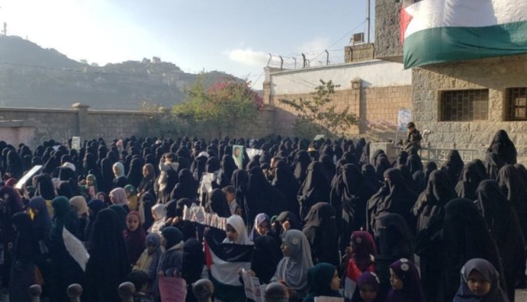 نظمت الهيئة النسائية بمحافظة حجة اليوم 41 وقفة تضامنية مع الشعب الفلسطيني في غزة تحت شعار “جهادًا في سبيل الله ونصرة لغزة.. سنواجه كل الطواغيت”.
