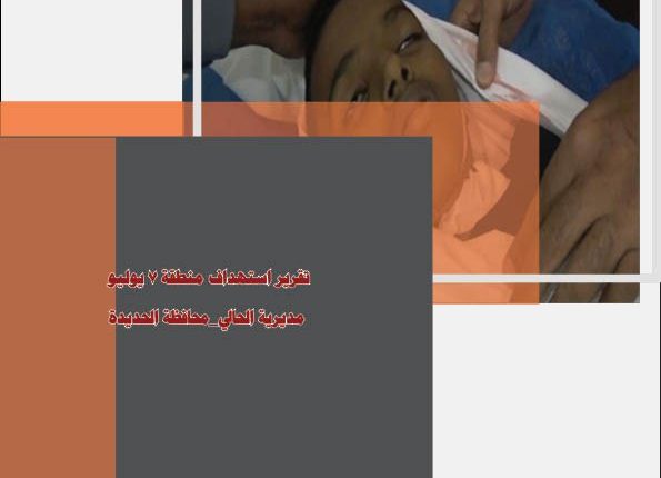 منظمة انتصاف تصدر تقريراً حقوقياً بعنوان ” تقرير استهداف منطقة 7 يوليو بمديرية الحالي بمحافظة الحديدة