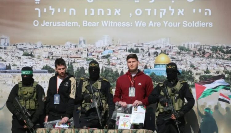 وتمّ تسليمهم في مدينة خان يونس في جنوب القطاع، وأُصعدوا إلى منصة وسط عشرات المسلحين الذين أحاطوا بهم وأمام حشد من الأشخاص الذين كانوا يهتفون ويصفقون. ثم تسلمّتهم اللجنة الدولية للصليب الأحمر.
