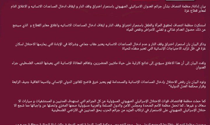 منظمة انتصاف – بيان ادانة