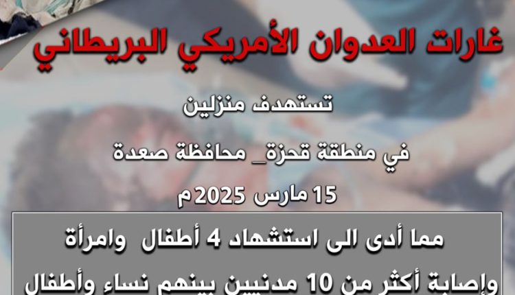 غارات العدوان الأمريكي البريطاني تستهدف منزلين في منطقة قحزة – محافظة صعدة 15 مارس 2025م