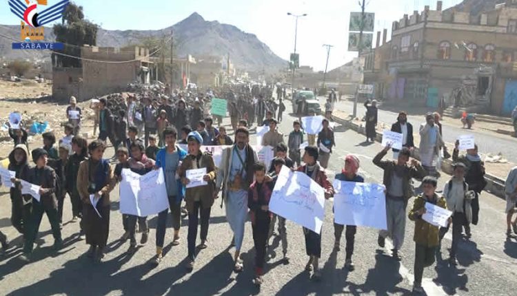 واعتبرت المسيرات، جرائم تحالف العدوان وسياسة التجويع التي ينتهجها بحق الشعب اليمني وسط صمت وخذلان دولي منذ سبعة أعوام، وصمة عار في جبين كل من يتشدق بحقوق الإنسان.