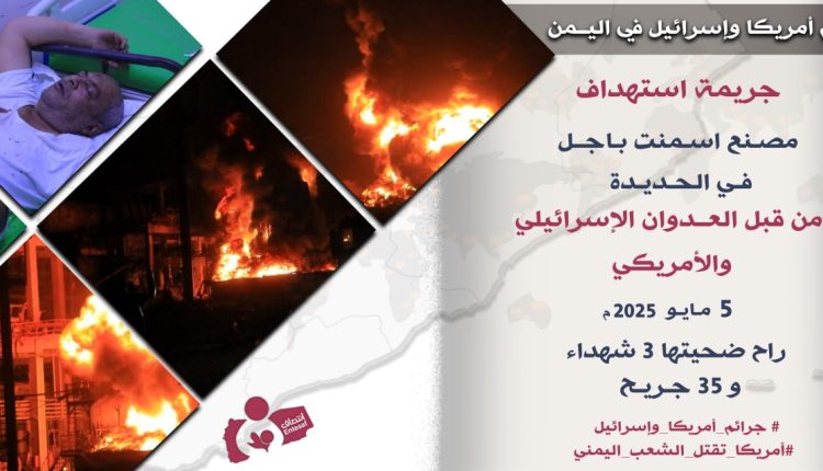 #جرائم_امريكاـوـإسرائيل_فيـ اليمن جريمة استهداف مصنع إسمنت باجل في الحديدة من قبل العدوان الإسرائيلي و الأمريكي 5 مايو 2025م