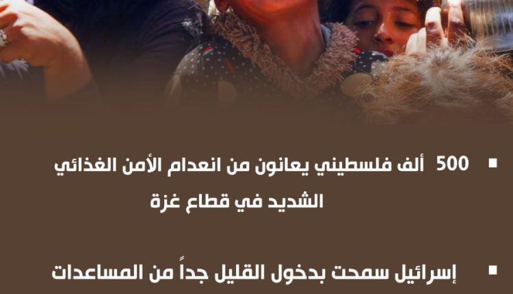 هناك حالياً 500 ألف فلسطيني يعانون من انعدام الأمن الغذائي الشديد في قطاع غزة و إنهم على شفا مجاعة إسرائيل سمحت بدخول القليل جدا من المساعدات إلى غزة