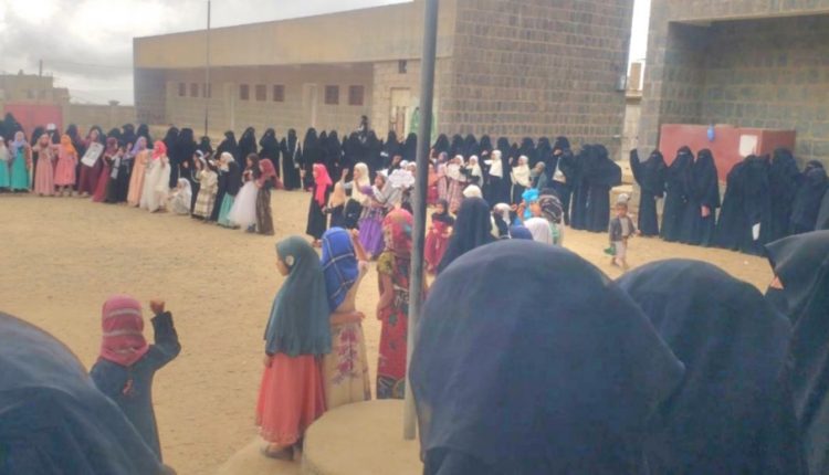 نظمت الهيئة النسائية في المحابشة بمحافظة حجة وقفة تضامنية نصرة للأقصى والشعب الفلسطيني تحت شعار ” لا أمن للكيان .. وغزة والأقصى تحت العدوان”.