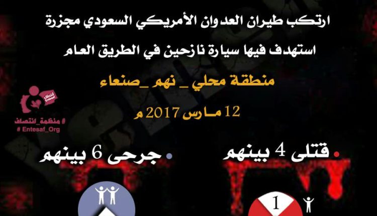 ارتكب طيران العدوان الأمريكي السعودي مجزرة استهدف فيها سيارة نازحين في الطريق العام في منطقة محلي – نهم – محافظة #صنعاء