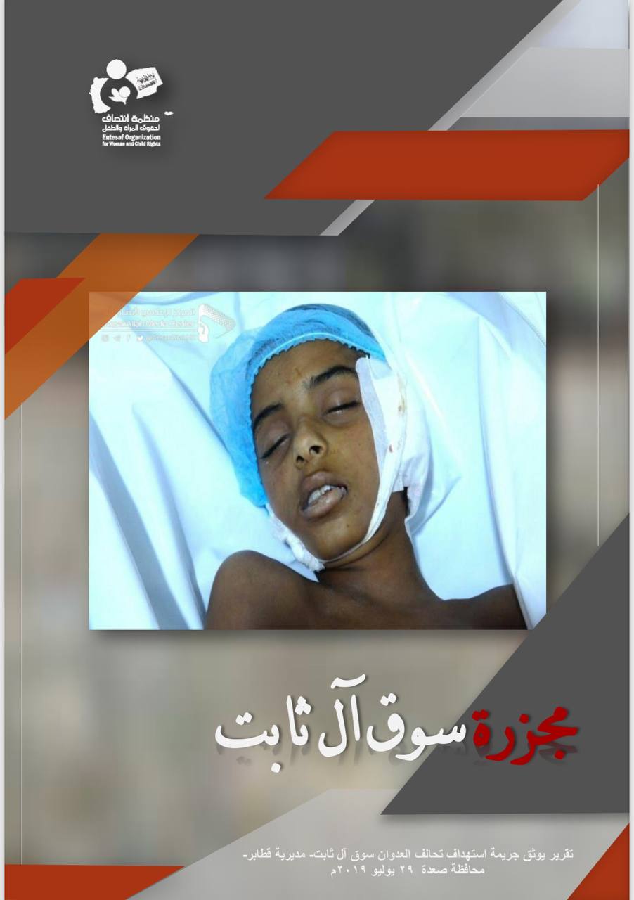 وثقت منظمة انتصاف لحقوق المرأة والطفل في تقريراً ح قوقياً بعنوان ” مجزرة سوق آل ثابت” جريمة قصف طائرات تحالف العدوان على سوق آل ثابت بمديرية قطابر التابعة لمحافظة صعدة والتي را ح ضحيتها مدنيين بينهم نساء و أطفال، وذلك بتاريخ 29 يوليو 2019م