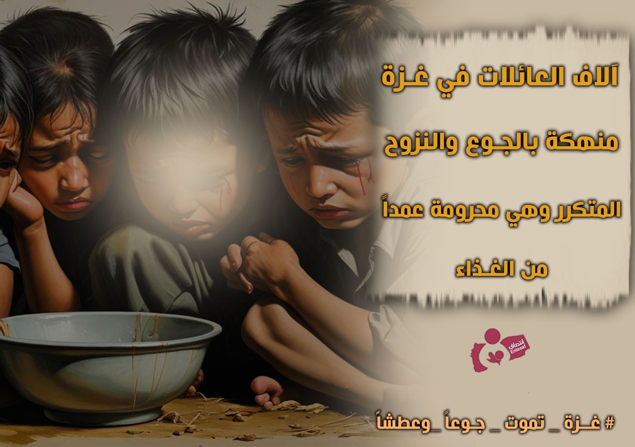 ألالف العائلات في غزة منهكة بالجوع و النزوح المتكرر وهي محرومة عمداً من الغذاء