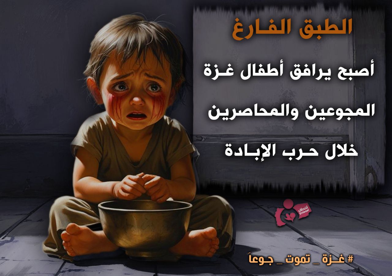 الطبق الفارغ أصبح يرافق أطفال غزة المجوعين و المحاصرين خلال حرب الإبادة