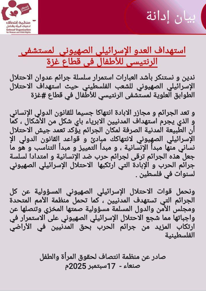 صادر عن منظمة انتصاف لحقوق المرأة والطفل