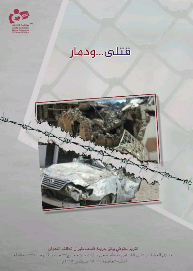 وثقت منظمة انتصاف لحقوق المرأة والطفل تقريراً حقوقياً بعنوان ” قتلى و دمار” حيث تناول التقرير جريمة قصف طيران تحالف العدوان على منزل المواطن علي الشامي بمنطقة باراك بن حجاج بمديرية الوحدة التابعة لأمانة العاصمة والتي را ح ضحيتها مدنيين بينهم نساء و أطفال، وذلك بتاريخ 18 سبتمبر 2015م