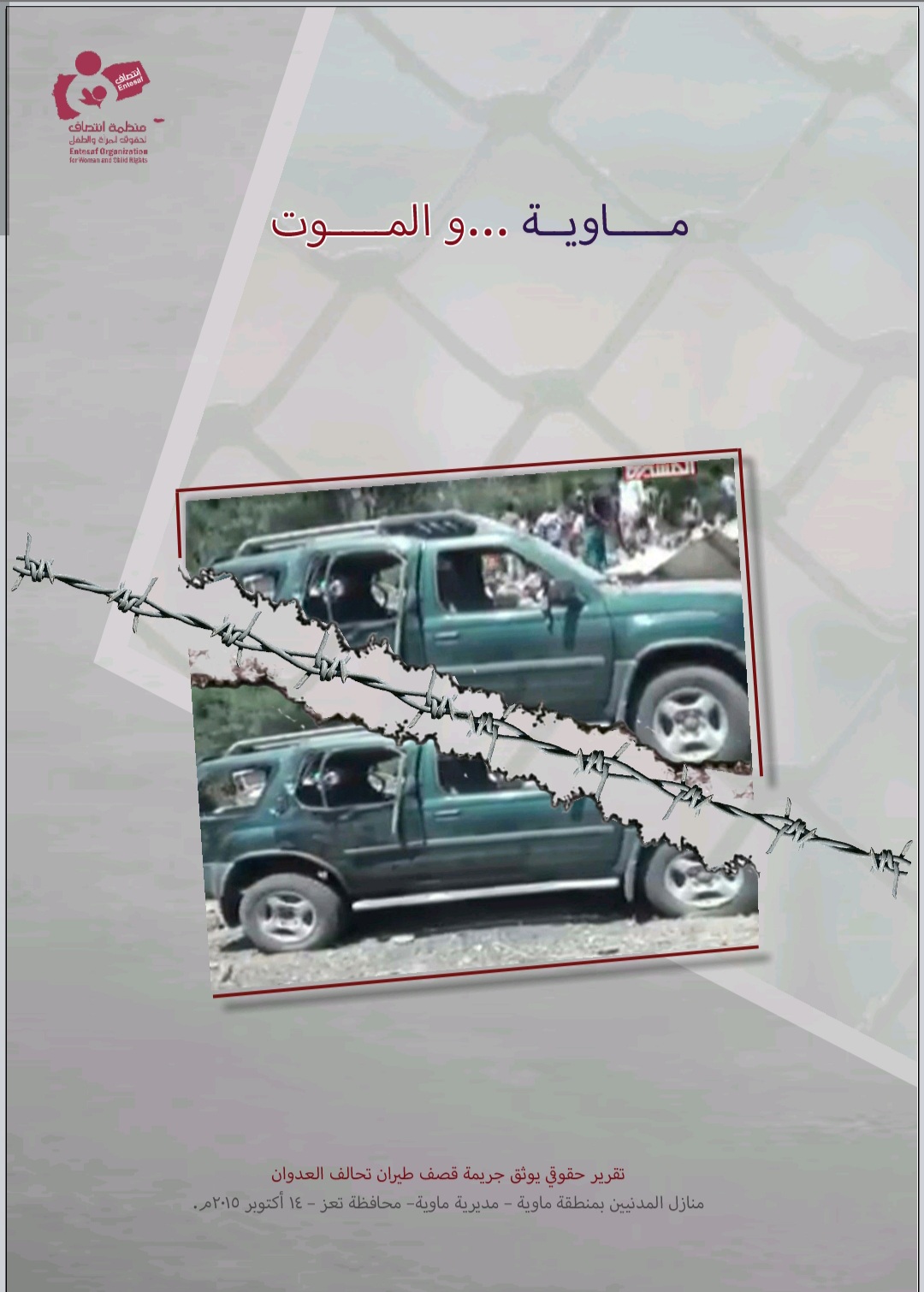 وثقت منظمة انتصاف لحقوق المرأة والطفل تقريراً حقوقياً بعنوان “ماوية و الموت” حيث تناول التقرير الجريمة التي ارتكبها طيران تحالف العدوان على منازل المدنيين بمنطقة ماوية بمديرية ماوية التابعة لمحافظة تعز والتي را ح ضحيتها مدنيين بينهم نساء و أطفال، وذلك بتاريخ 14 اكتوبر 2015م