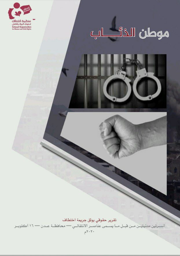 وثقت منظمة انتصاف لحقوق المرأة والطفل تقريراً حقوقياً بعنوان ” موطن الذئاب” حيث تناول التقرير جريمة اختطاف أسرتين مدنيتين من قبل مايسمي عناصر الانتقالي بمحافظة عدن 16 اكتوبر 2020م