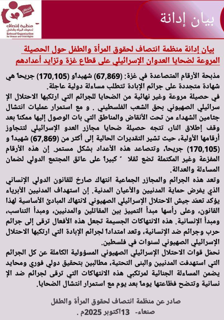 صادر عن منظمة انتصاف لحقوق المرأة والطفل صنعاء