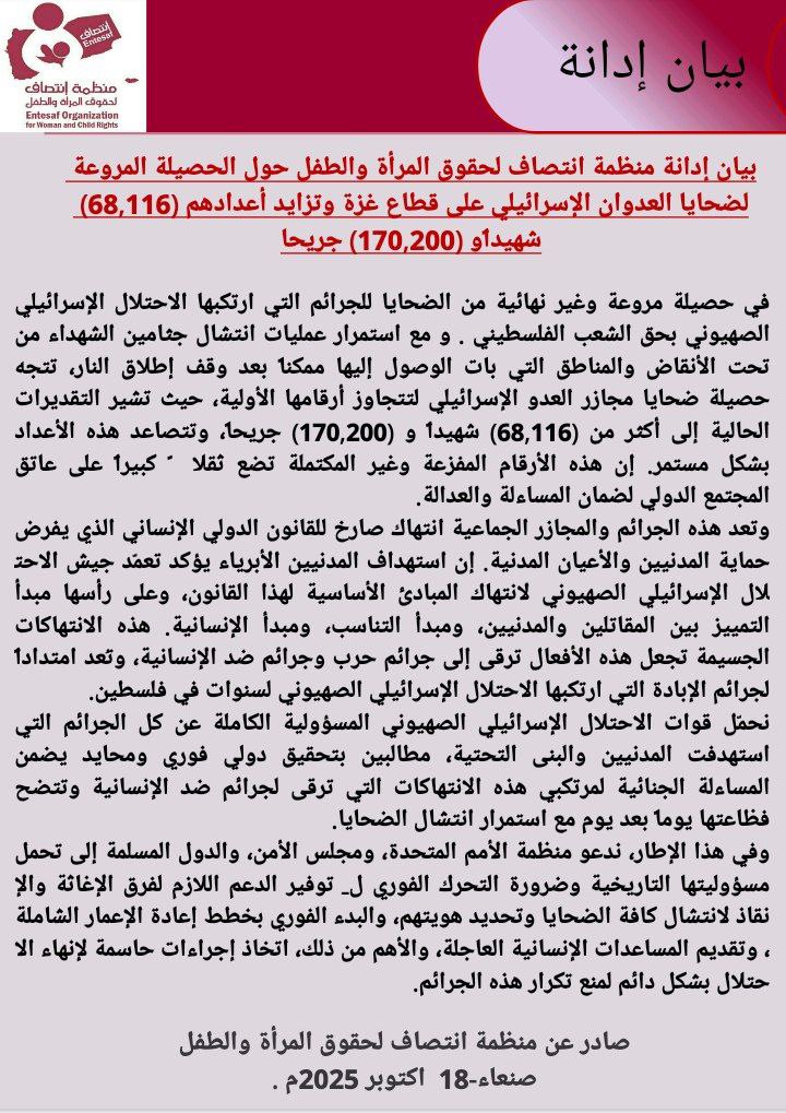 صادر عن منظمة انتصاف لحقوق المرأة والطفل صنعاء