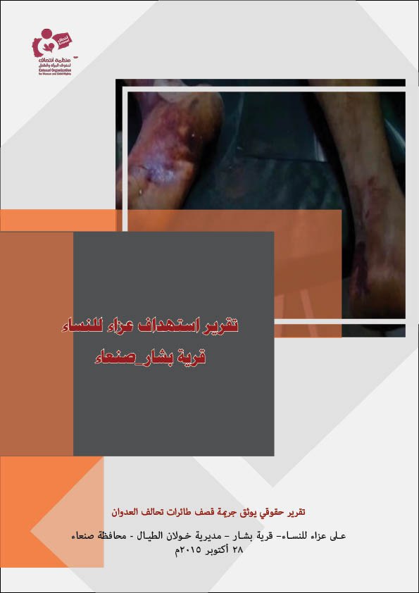 وثقت منظمة انتصاف لحقوق المرأة والطفل تقريراً حقوقياً بعنوان “تقرير استهداف عزاء للنساء بقرية بشار محافظة صنعاء” حيث تناول التقرير جريمة قصف طيران تحالف العدوان على عزاء للنساء بمنطقة قرية بشار بمديرية خولان الطيال التابعة لمحافظة صنعاء والتي راح ضحيتها مدنيين بينهم نساء و أطفال، وذلك بتاريخ 28 اكتوبر 2015م