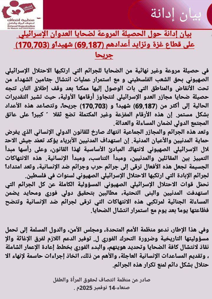 صادر عن منظمة انتصاف لحقوق المرأة والطفل صنعاء