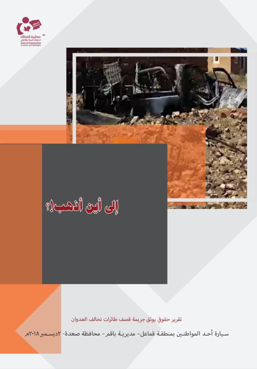 وثقت منظمة انتصاف لحقوق المرأة والطفل تقريراً حقوقياً بعنوان ” إلى أين أذهب” حيث تناول التقرير جريمة قصف طيران تحالف العدوان على سيارة المواطنين بمنطقة قماعل بمديرية باقم التابعة لمحافظة صعدة والتي راح ضحيتها مدنيين بينهم نساء و أطفال، وذلك بتاريخ 2 ديسمبر2018م