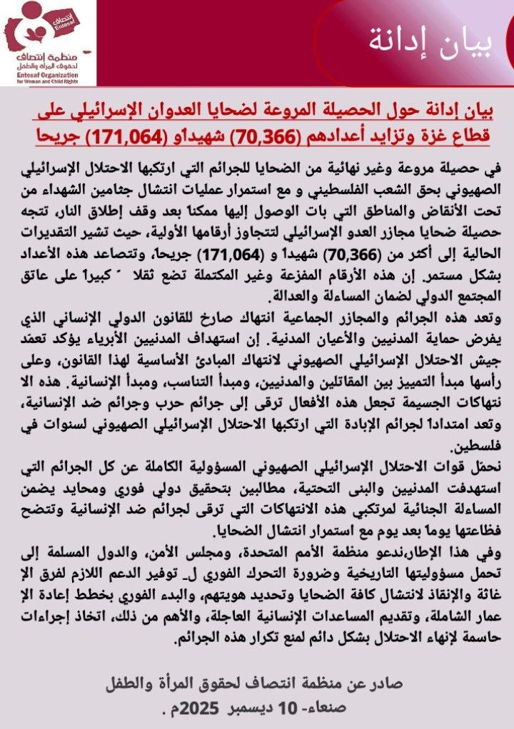 صادر عن منظمة انتصاف لحقوق المرأة والطفل صنعاء