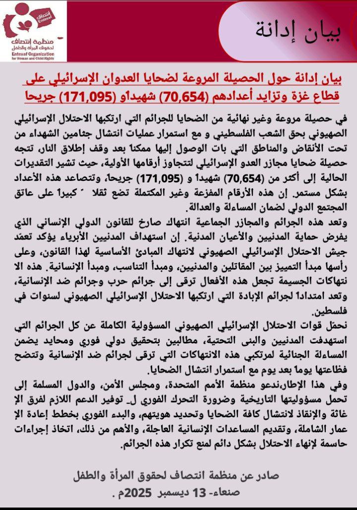 صادر عن منظمة انتصاف لحقوق المرأة والطفل صنعاء