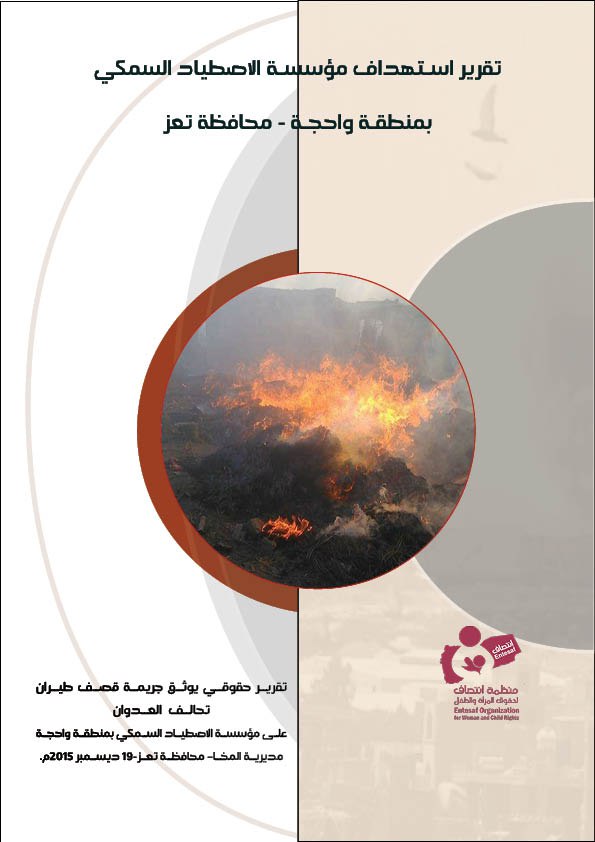 اصدرت منظمة انتصاف لحقوق المرأة والطفل تقريراً حقوقياً يوثق “استهداف مؤسسة الاصطياد السمكي بمنطقة واحجة بمحافظة تعز “حيث تناول التقرير جريمة قصف طيران تحالف العدوان على مؤسسة الاصطياد السمكي بمنطقة واحجة بمديرية المخا بمحافظة تعز على والتي راح ضحيتها مدنيين بينهم نساء و أطفال، وذلك بتاريخ 19 ديسمبر 2016م