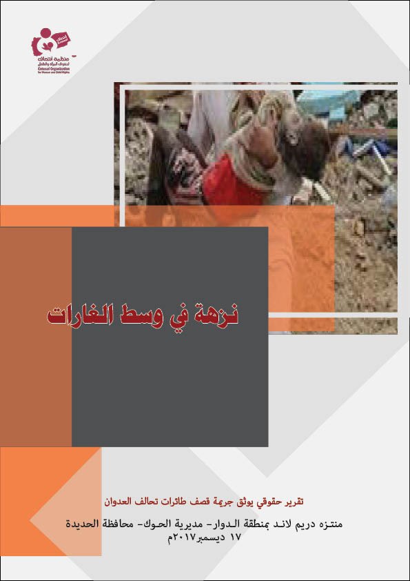 وثقت منظمة انتصاف لحقوق المرأة والطفل تقريراً حقوقياً بعنوان ” نزهة في وسط الغارات” حيث تناول التقرير جريمة قصف طيران تحالف العدوان على منتزة دريم لاند بمنطقة الدوار بمديرية الحوك التابعة لمحافظة الحديدة والتي راح ضحيتها مدنيين بينهم نساء و أطفال، وذلك بتاريخ 17 ديسمبر 2017م