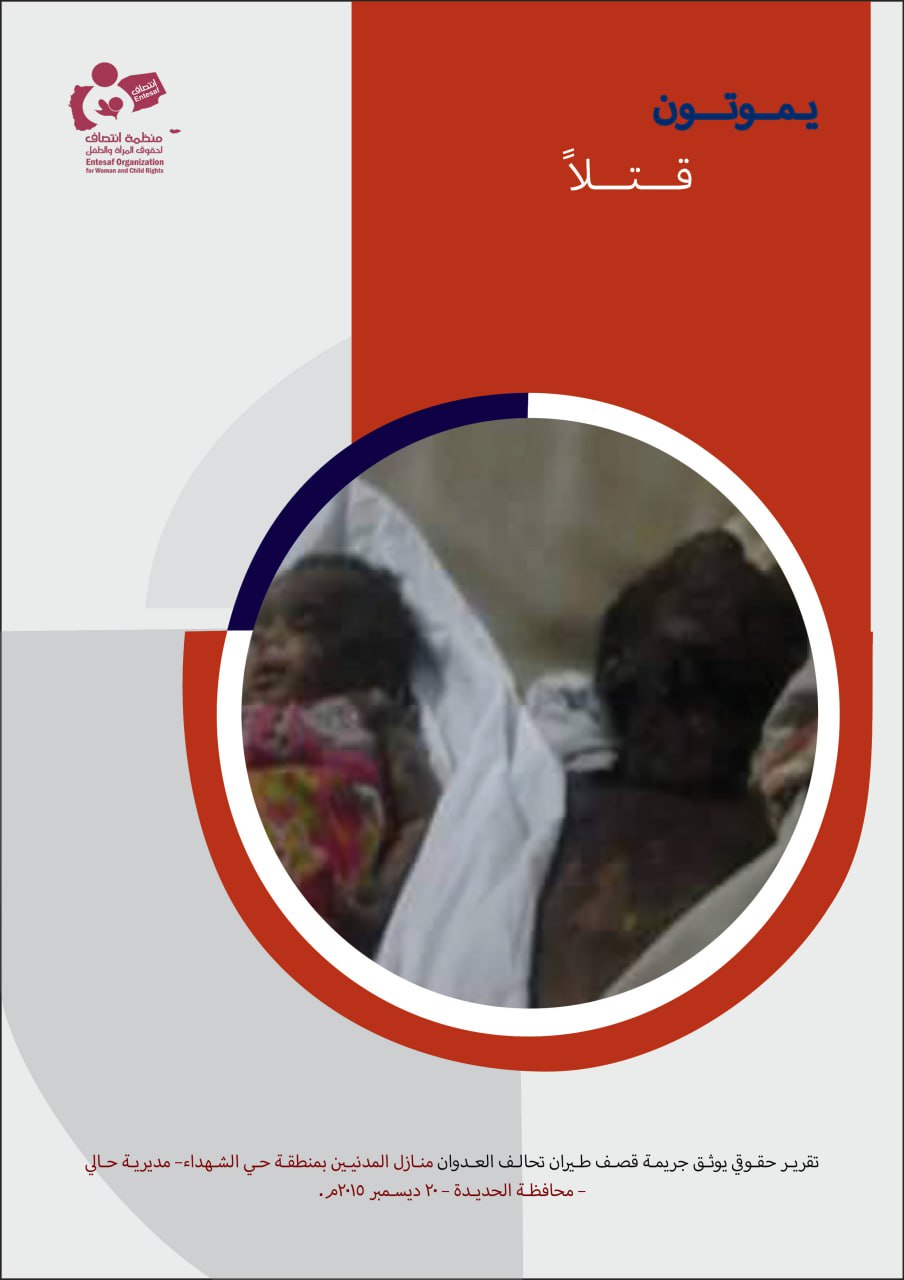 وثقت منظمة انتصاف لحقوق المرأة والطفل تقريراً حقوقياً بعنوان “يموتون قتلاً”حيث تناول التقرير الجريمة التي ارتكبها طيران تحالف العدوان على منازل المدنيين بمنطقة حي الشهداء بمديرية بيت الحالي محافظة الحديدة والتي را ح ضحيتها مدنيين بينهم نساء و أطفال، وذلك بتاريخ 20 ديسمبر 2015م