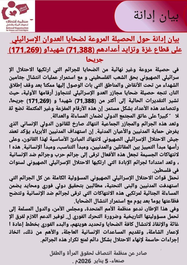 صادر عن منظمة انتصاف لحقوق المرأة والطفل صنعاء